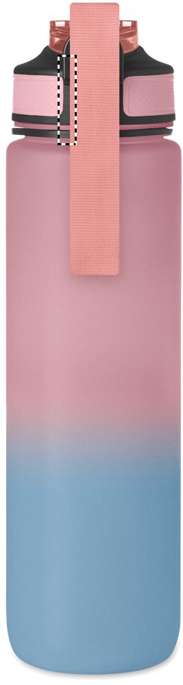 Sportwaterfles van RPET met ingebouwd rietje, zachte siliconen tuit, motiverende tijdsaanduiding, met één hand te openen flip top deksel, veiligheidsslot en draagband. Lekvrij. Inhoud 1L.
