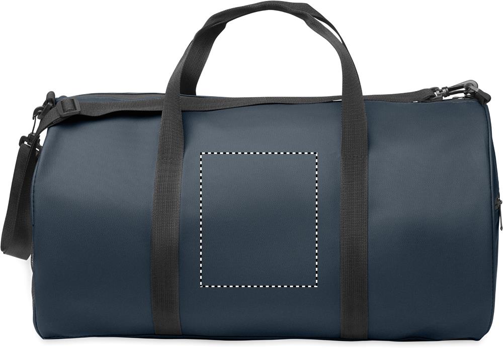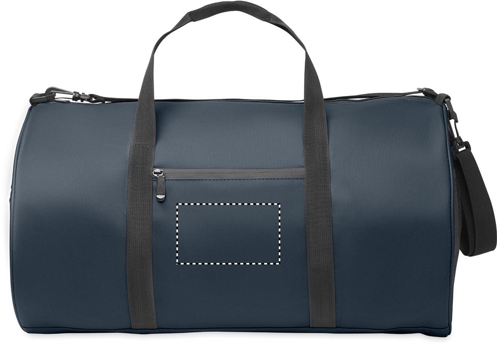 Reistas met PU-gecoat 600D RPET polyester en 210D RPET polyester binnenvoering. Voorvak met ritssluiting. 1 zijvak met rits / 1 zijvak met mesh. Ritsvak aan de binnenkant.